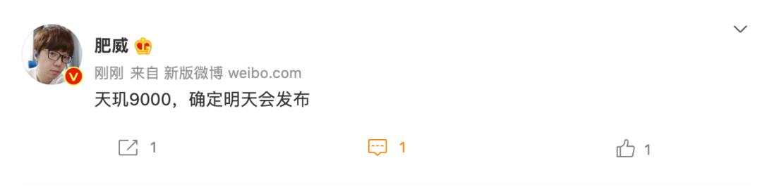 根据知名数码博主肥威的消息,联发科天玑 9000 将于明天(11 月 19 日)发布。