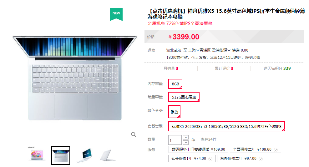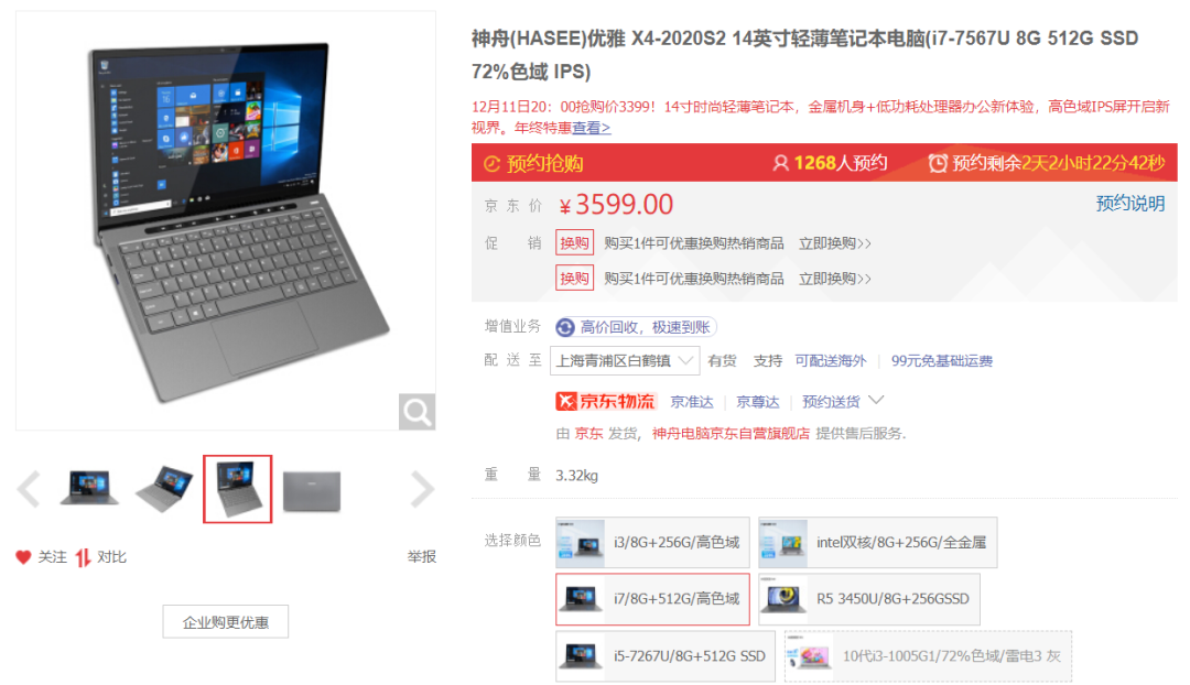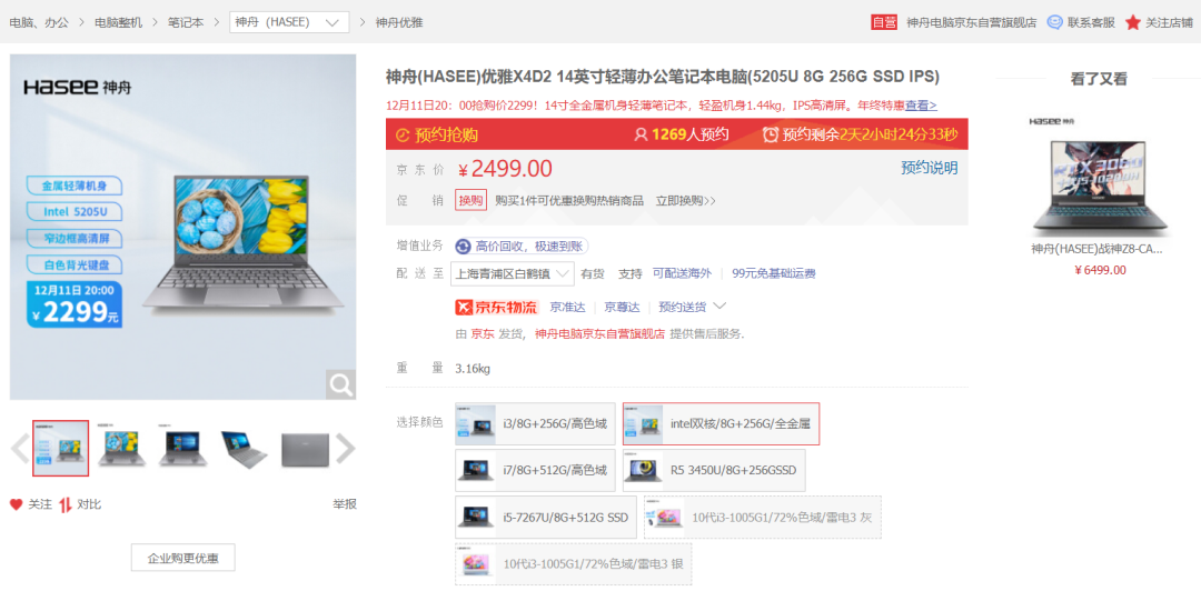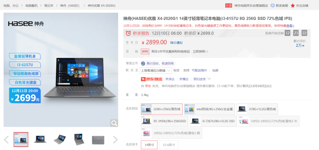 京东搜索[神舟电脑京东自营旗舰店],12月11日20点开启优惠!