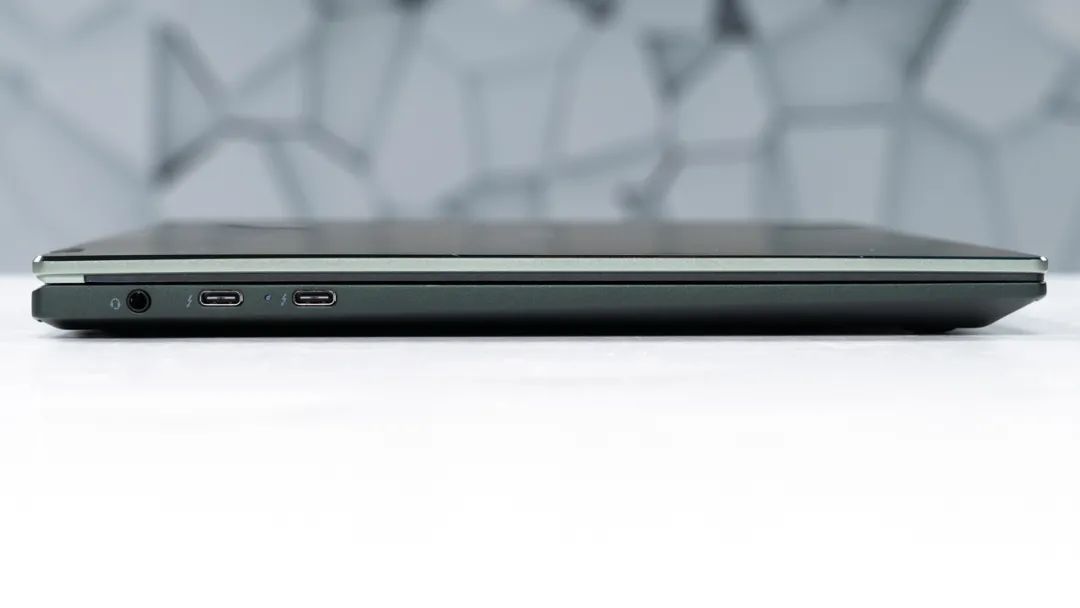 接口方面,机身左侧为3.5mm音频接口、双雷电4接口;机身右侧为USB3.2 Gen2 Type-A接口与MicroSD卡槽。