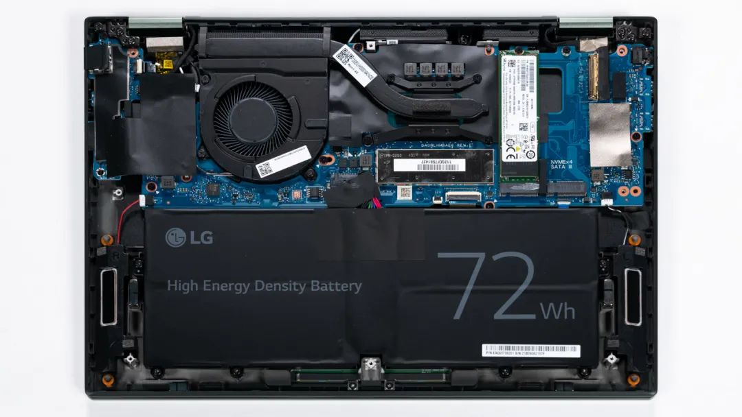 上图是LG gram 14 二合一的拆机实拍图,单风扇单热管的组合。