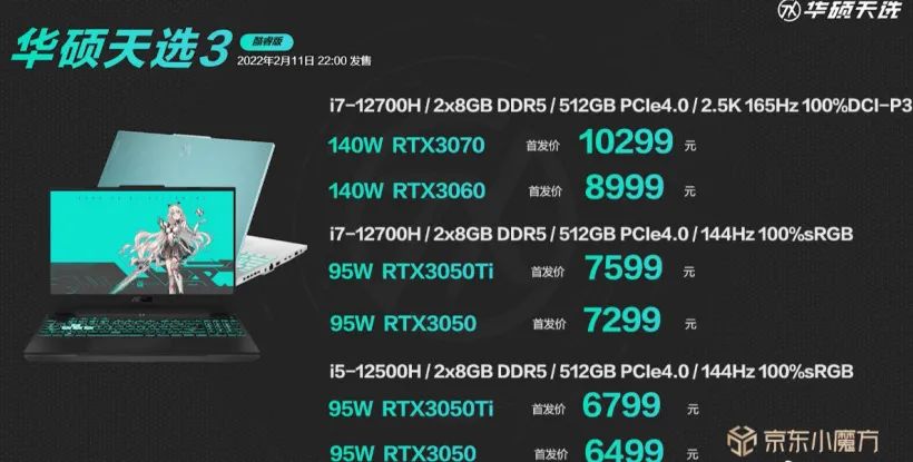 6499 元起,华硕天选 3 / 3 Plus 今晚开卖:12 代酷睿 + RTX 30 显卡