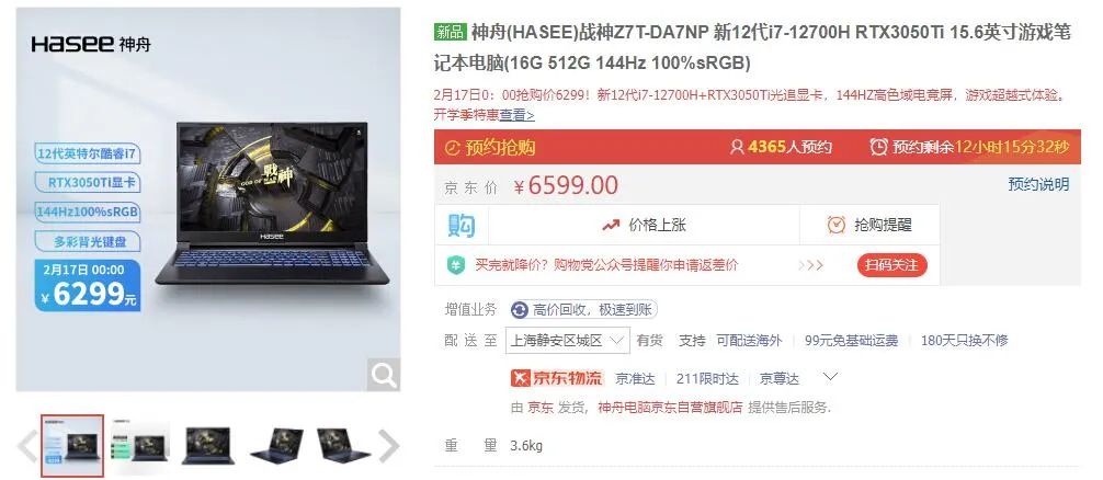 2月17日~,神舟京东自营主流产品均有不同幅度的降价,英特尔第12代酷睿+RTX3060游戏本最低6999元即可入手!