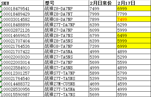 上面的表格是【神舟电脑京东自营旗舰店】的促销列表,如果你对上述型号感兴趣,可以在京东app搜索对应sku数字,即可直接跳转至对应商品。