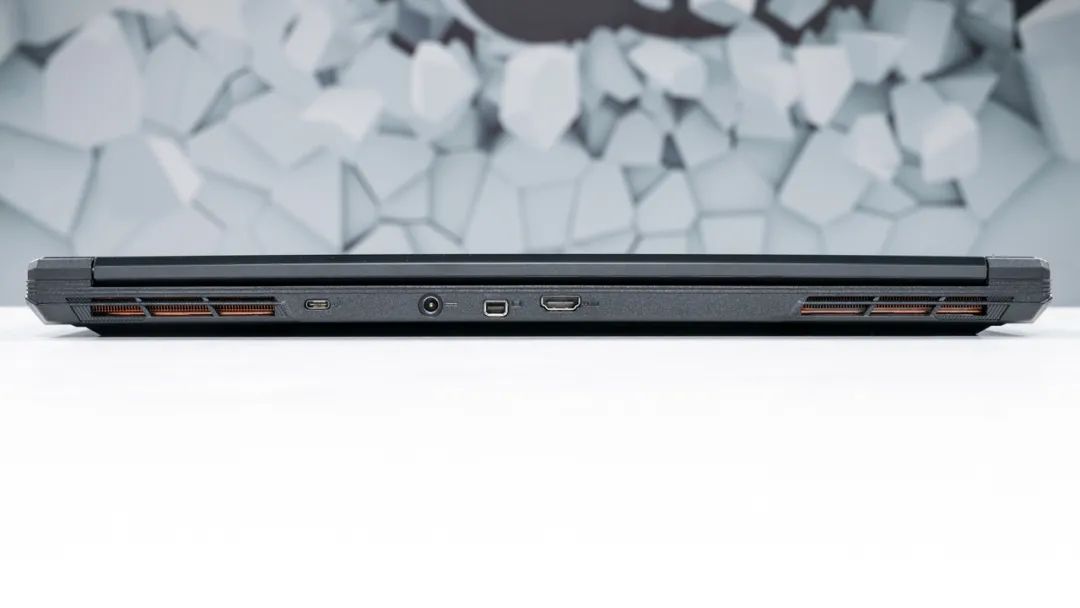 机身后侧为USB3.2 Gen2 Type-C接口(支持视频输出)、DC电源接口、miniDP1.4,以及HDMI2.0。