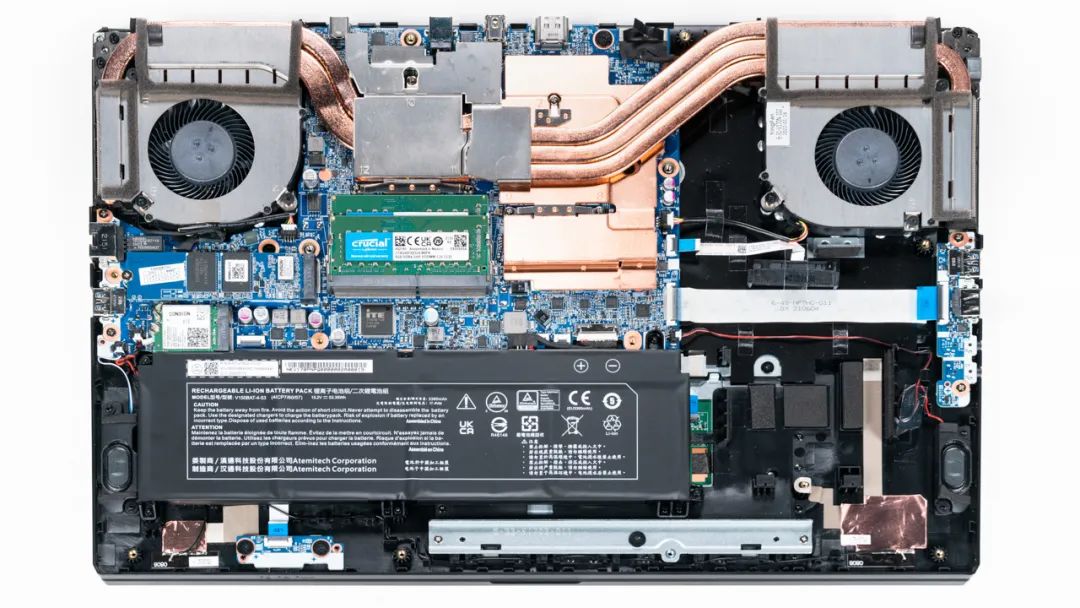 上图是神舟 战神G8-DA7NP的拆机实拍图,五热管双风扇的组合,规格和Z8基本一致,可以看到右侧有“拉皮”形成的空档