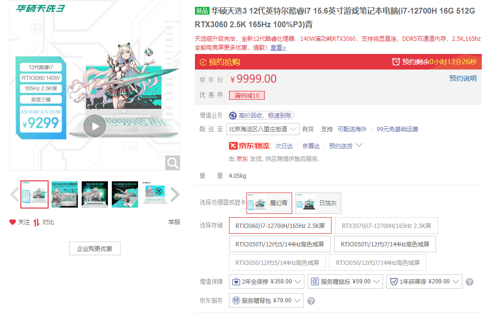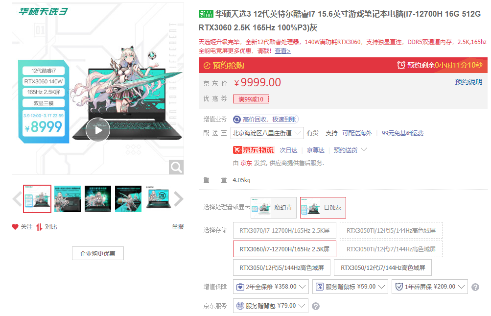 天选姬出道2周年,12代i7+3060独显售价8999元