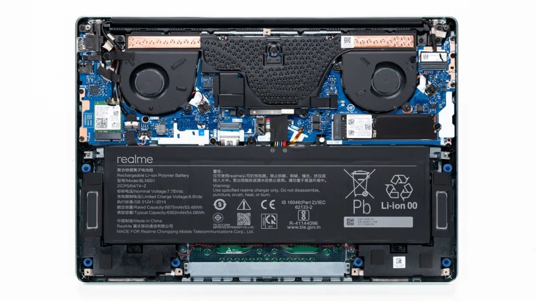 上图是realme Book增强版的拆机实拍图,双风扇加VC均热板的组合。