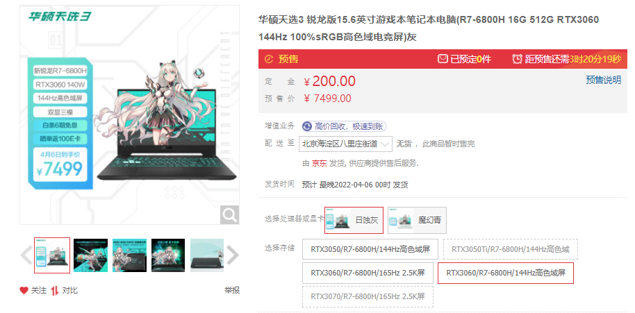 R7+RTX3060+DDR5内存,华硕天选3 锐龙版到手价7499元