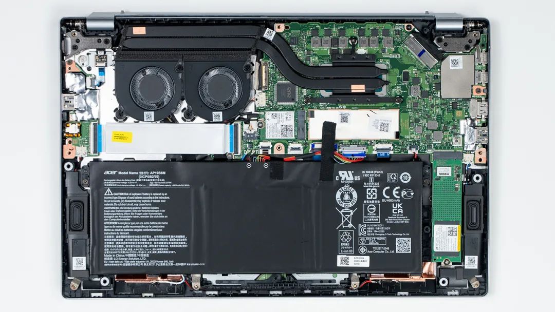 上图是宏碁 非凡S3 2022的拆机实拍图,双风扇双热管的组合。