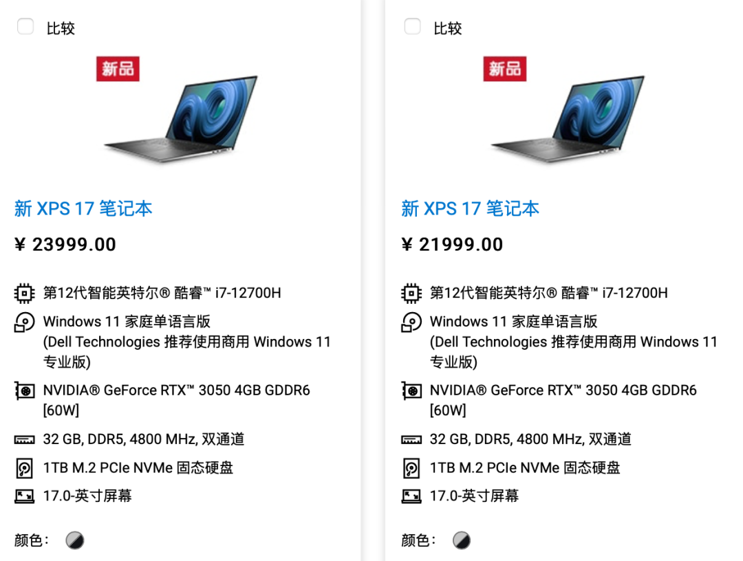 现在,戴尔中国官网已经上架了款 XPS 15 / XPS 17,售价 17999 元起。