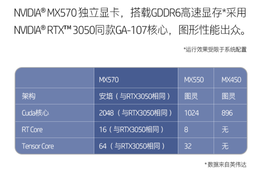 该机最高搭载英伟达 MX570 独立显卡,配备 GDDR6 显存,采用 GA-107 核心,3D Mark Firestrike 跑分比上一代提升了 73%。