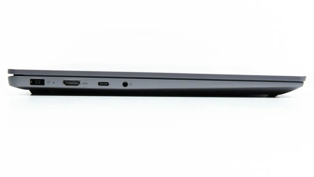 接口方面,机身左侧依次为电源、HDMI2.0、全功能Type-C及3.5mm音频接口;
