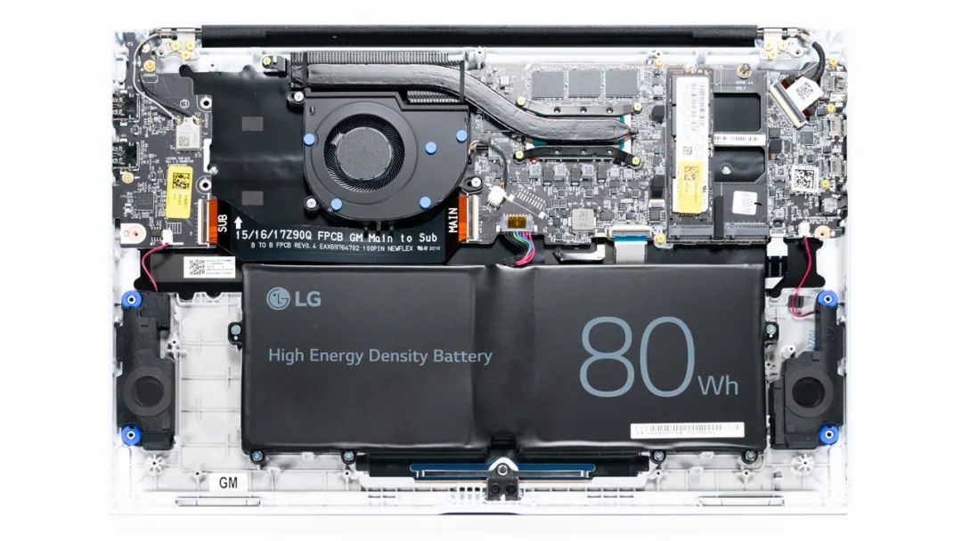 上图是LG gram 16Z90Q的拆机实拍图,单风扇单热管的组合。