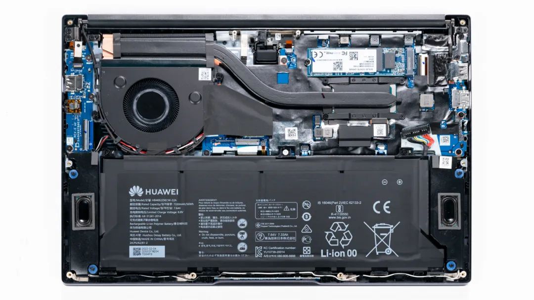 上图是华为 MateBook D14的拆机实拍图,单风扇单热管的组合。