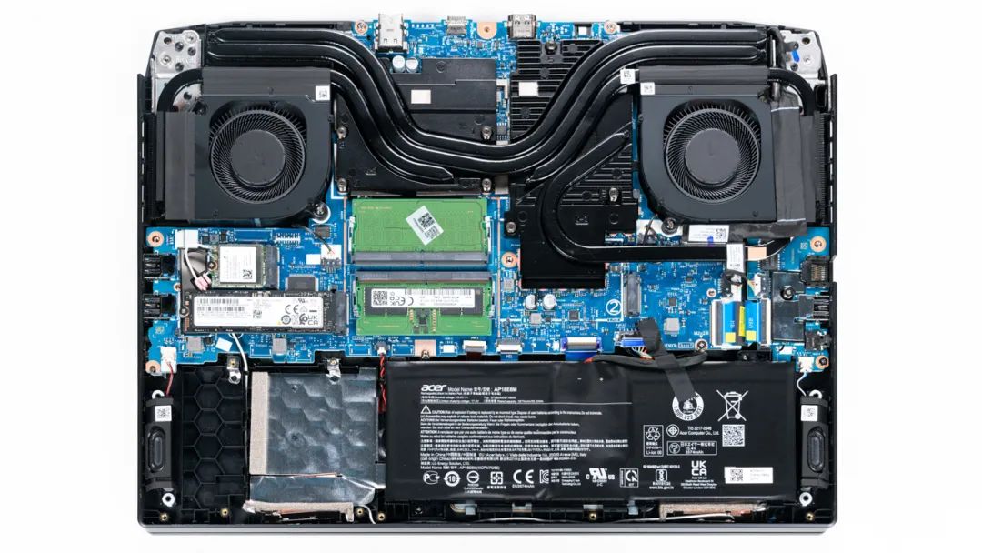 上图是宏碁 暗影骑士·龙的拆机实拍图,5热管双风扇的组合,和暗影骑士·擎散热规格一致。