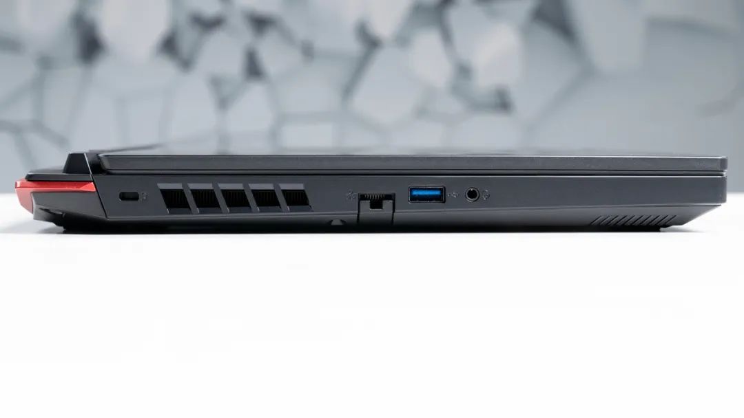 接口方面,电脑左侧依次为RJ45网口、USB3.2 Gen1 Type-A、3.5mm耳麦接口;