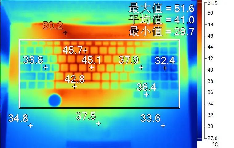 1,高负载下,表面温度较高