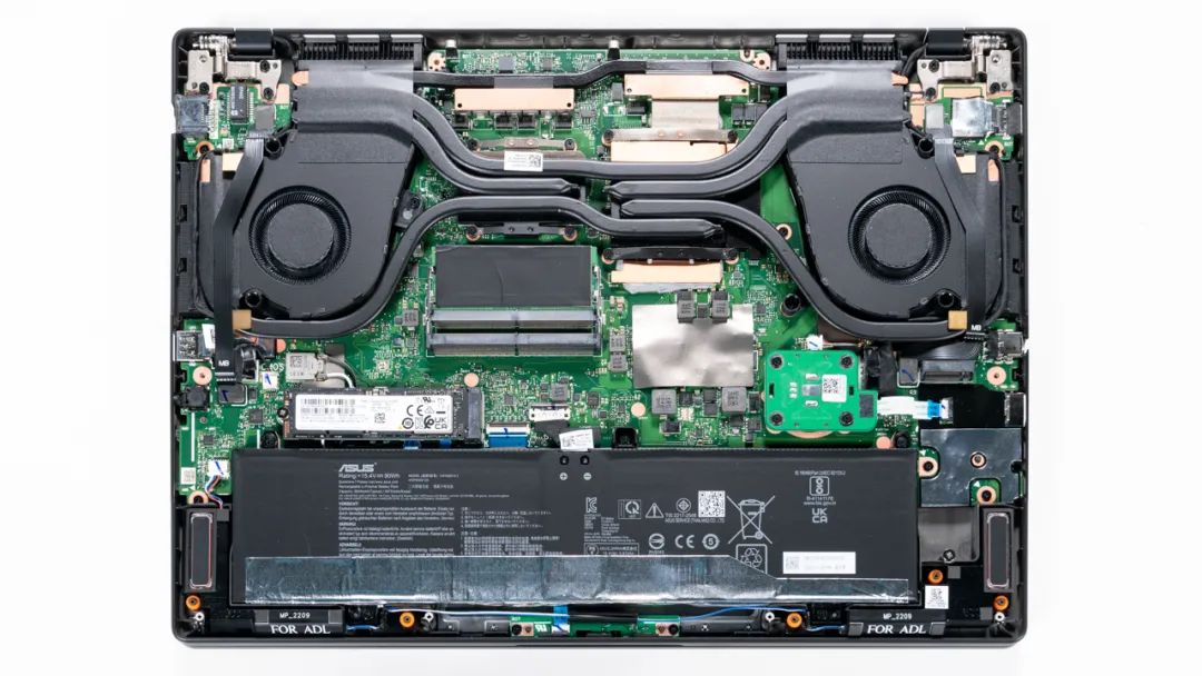 上图是华硕ProArt 创16 2022的拆机实拍图,六热管双风扇的组合。