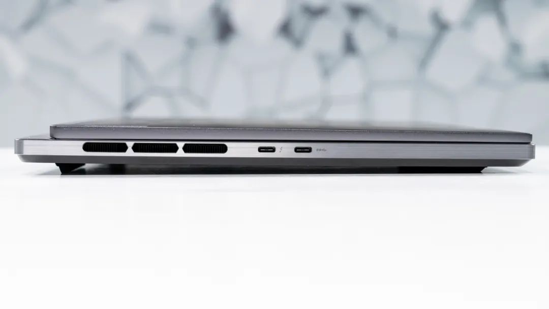 接口方面,机身左侧依次为雷电4和USB3.2 Gen2 Type-C接口。(均支持PD充电+DP视频输出)