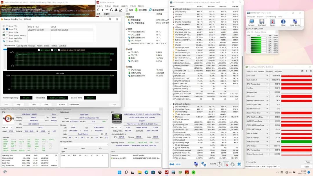 总的来说,雷蛇 灵刃14 粉晶版的散热表现中规中矩,这么小的体积下,能让R9+3070Ti拥有这样的性能释放,且核心温度也不高,属实不易。