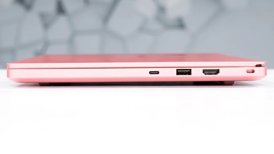 雷蛇 灵刃14 粉晶版最大的特点是配色,粉色的电脑本不多见,这种通体粉色的产品就更少了。