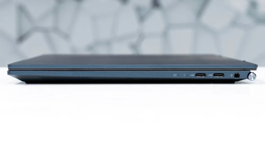 接口方面,机器有三个全功能Type-C接口,左侧1个,右侧2个,此外右侧还有一个3.5mm音频接口。