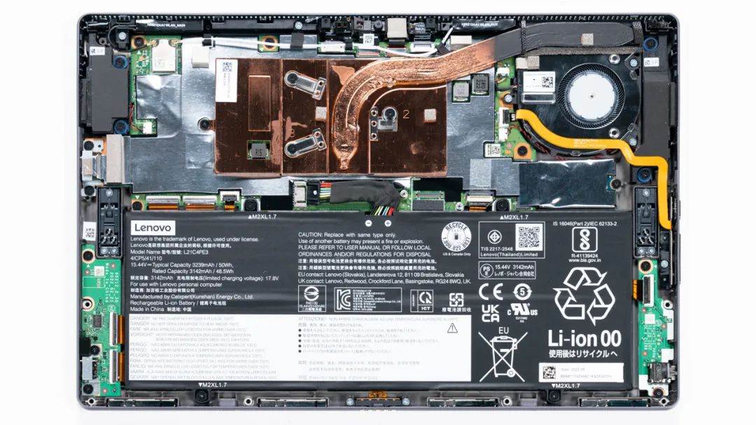 上图是联想 小新Duet的拆机实拍图, 单风扇单热管的组合。