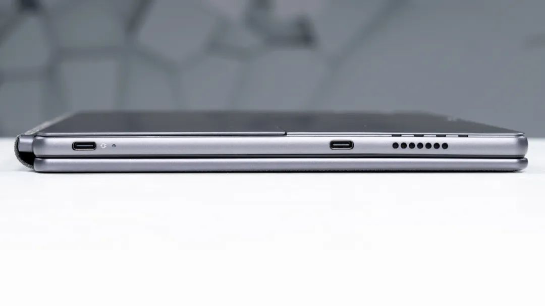 接口方面,它的左侧有两个全功能Type-C,机身右侧有一个3.5mm音频接口,建议配合接口扩展坞使用。
