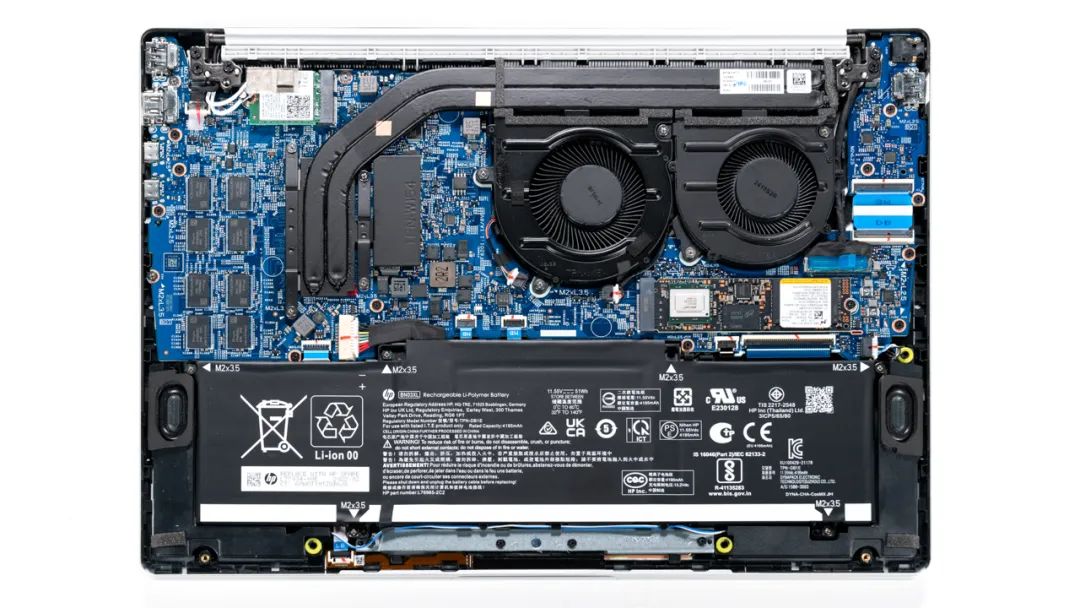 上图是惠普 星14 Pro的拆机实拍图,双风扇双热管的组合。