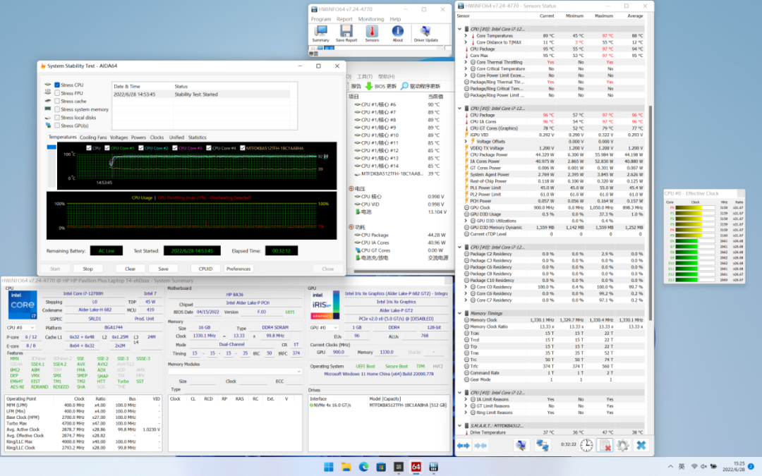 总的来说,惠普星14 Pro的散热表现尚可,虽然CPU撞墙,但只是蹭到了一下,功耗很贴近45W目标值。(测试时正值盛夏,室温控制难度大)