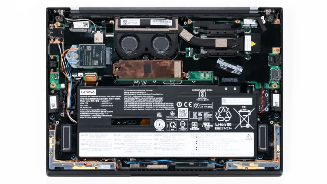 上图是ThinkPad X1 Carbon 2022的拆机实拍图, 双风扇单热管的组合。