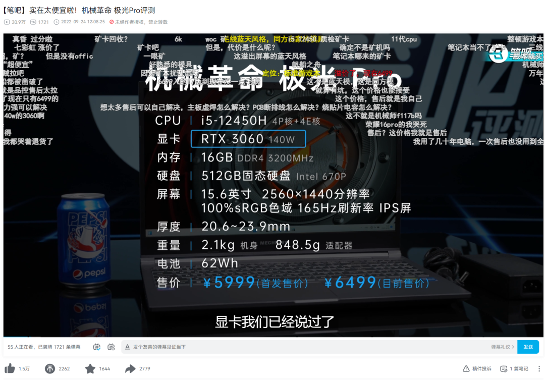 这台电脑可以说是RTX3060游戏本里的“性价比之王”了,这也让我对机械革命重燃热火,想看看他们究竟还有哪些性价比很高的游戏本存在。