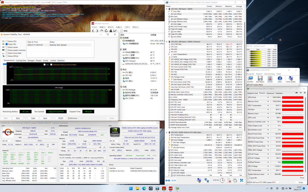 总的来说,联想拯救者 R9000P 2022的散热表现不错,性能释放激进,温度控制得也可以,单烤显卡没达到140W可能是PPAB没调好的关系,不影响实际性能,介意的话可以关注最新BIOS推送。