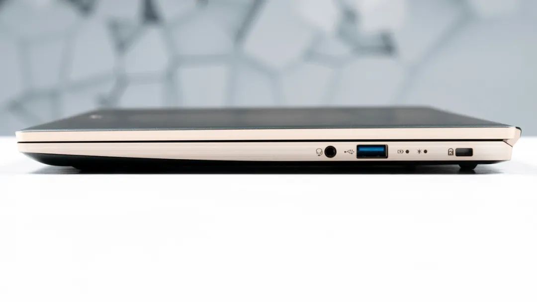 机身右侧有一个USB3.2 Gen1 Type-A,以及3.5mm音频接口。
