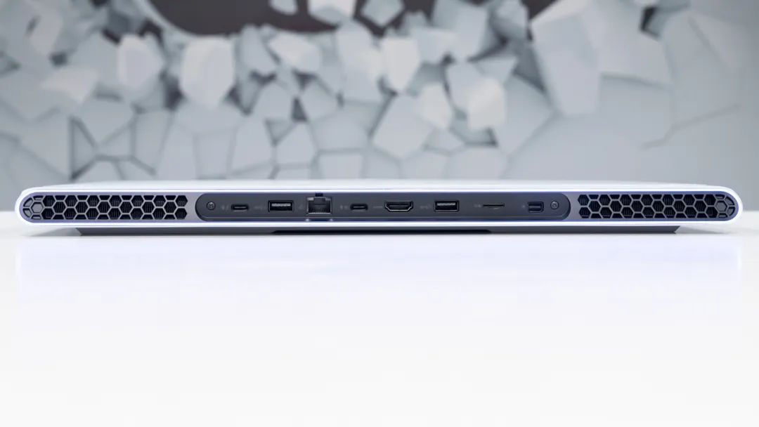 后方依次为雷电4、USB3.2 Gen1 Type-A、RJ45网口、全功能Type-C、HDMI2.1、USB3.2 Gen1 Type-A、MircoSD卡槽与miniDP接口。