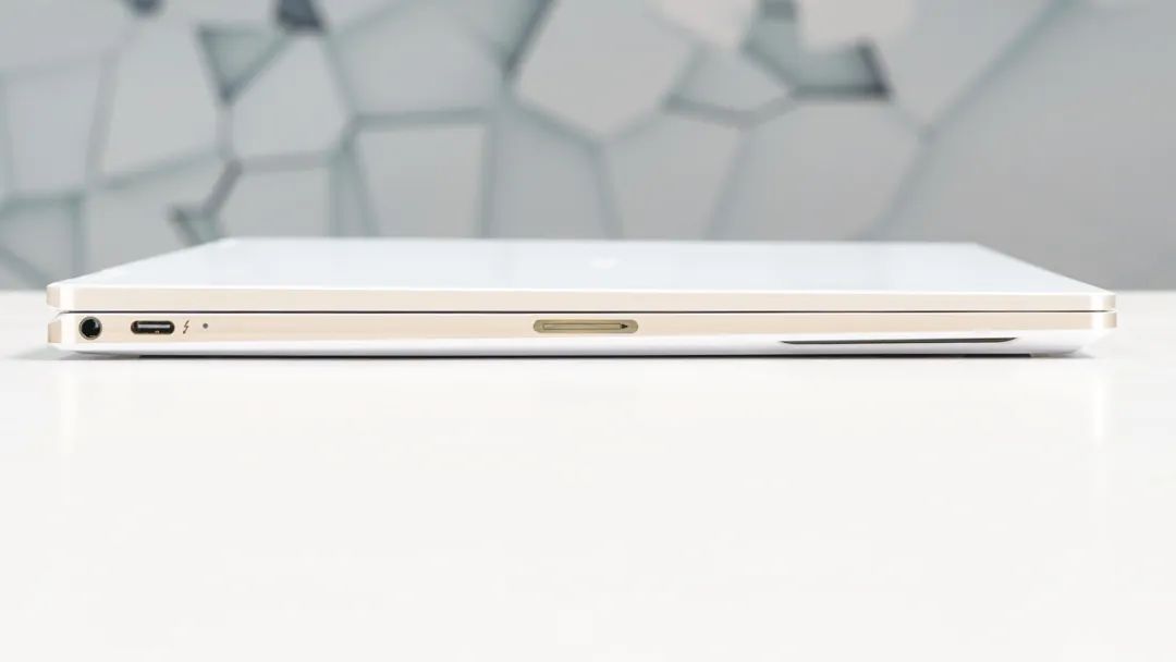 接口方面,机身左侧有一个雷电4接口,和3.5mm音频接口;