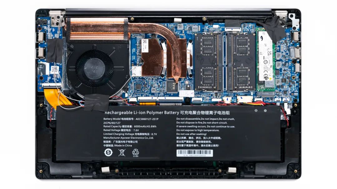 上图是清华同方 然14的拆机实拍图,单风扇单热管的组合。