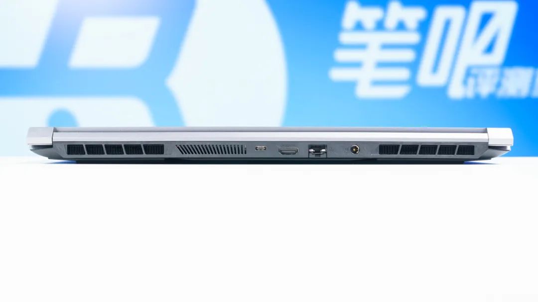 机身后侧有USB3.2 Gen2 Type-C接口、HDMI2.1、RJ45网线接口,以及DC电源口。