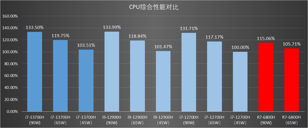 而表中的综合性能是取的所有多核成绩平均值,所以显而易见的13700H真实成绩应该会比我们这次测试的更高,这点需要特别注意,同样的情况也出现在了我们之前测试的13900H上。