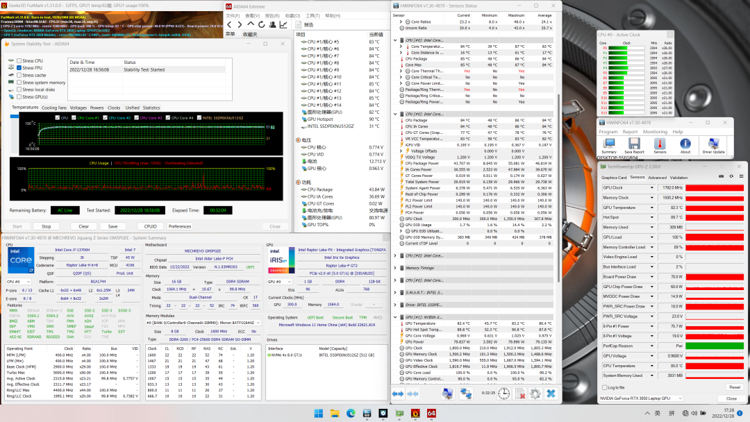 使用Furmark单烤显卡,功耗94.5W,温度69.3℃,显卡介于温度强和电压墙之间,是95W3050的正常状态。
