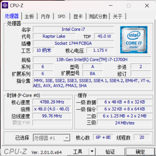 这颗处理器同样属于13代H45产品线,依旧是6大核8小核的规格,缓存方面也和上一代一致,频率有所提升,从12700H的