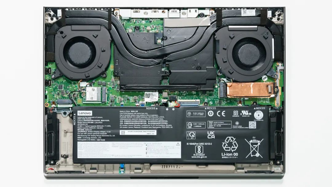 上图是联想 ThinkBook 16p 2022的拆机实拍图,四热管双风扇的组合。