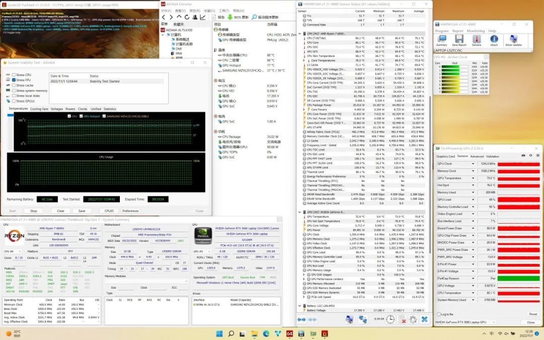 在满载状态下,开启野兽模式,CPU温度最高90.4℃,稳定在80.1℃左右,功耗35W,频率3.2GHz左右;