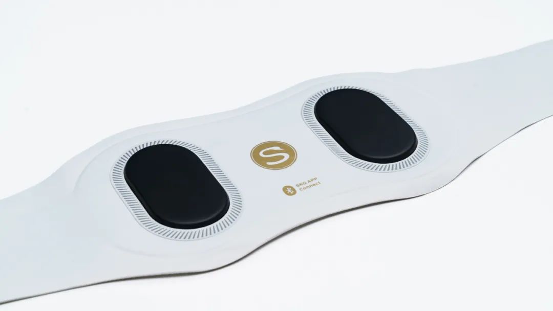SKG W7尊贵款的电极样式经过了修改,这两个“大眼睛”就是按摩区域,采用的是柔性电极,能覆盖腰部区域,且不像其他产品的金属电极冰凉刺骨,穿戴使用更舒适。