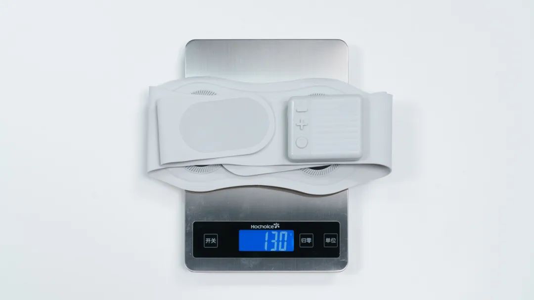 重量方面,在佩戴控制盒的情况下,实测重量仅有130g,要知道一台iPhone 13 mini都得140g,W7尊贵款可谓是非常轻便了,不同于其他累赘造型的按摩仪,它采用了亲肤面料,软滑透气,贴合度很好,穿上后放下衣服完全看不出来。