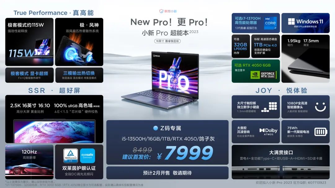 联想小新 Pro 14/16 2023 酷睿版发布:普及 32GB + 1TB 配置,可选 RTX 4050