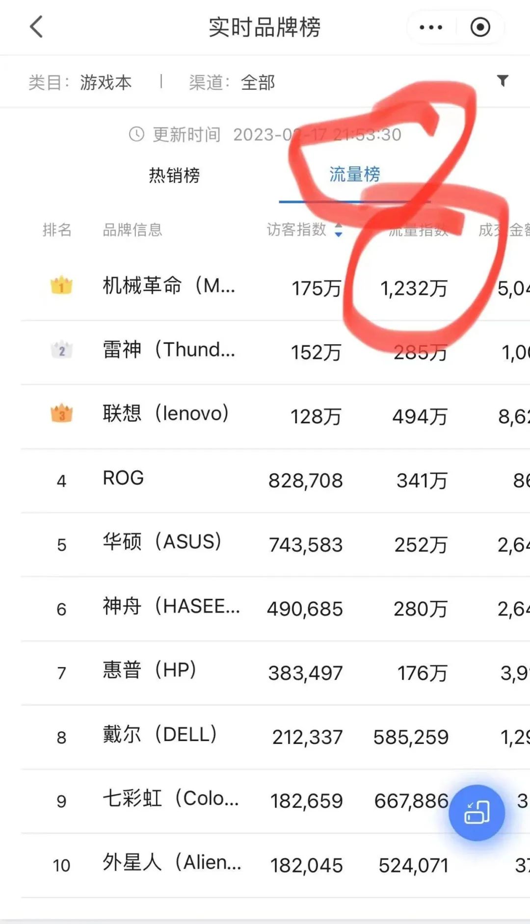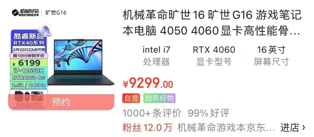 其中,机械革命流量指数1232万排第1名,比第2~第4名的流量加起来都要多!原因很简单,他们卖了一波5999元的RTX4060游戏本。