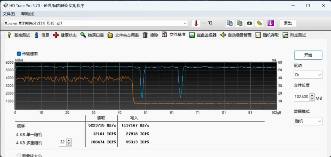 我们跑了一下硬盘的性能,无论是缓内还是缓外都表现不错,作为主硬盘没任何毛病。