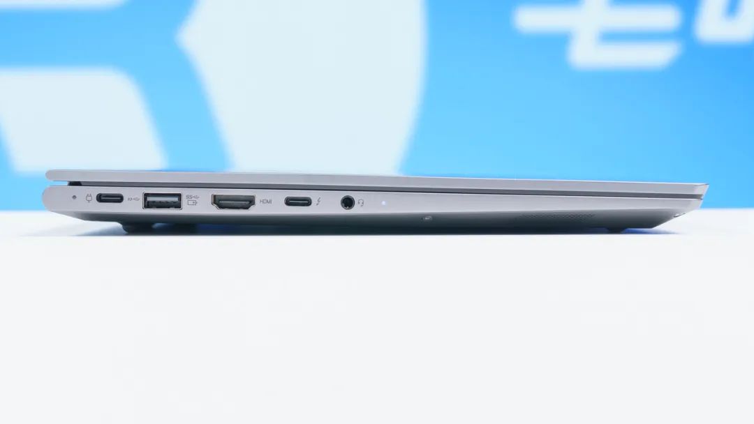 接口方面,机身左侧依次为USB-C(支持PD充电与视频输出)、USB-A 5Gbps、HDMI2.0、雷电4,以及3.5mm音频接口;