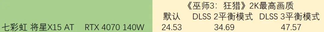 在2K全高的画质下在原有的DLSS2设置下仅能超过30帧,在DLSS 3加持下帧数还可以进一步提升27%,建议想流畅游玩《巫师:3狂猎》的用户可以适当降低游戏画质并搭配DLSS 3会有更好的游戏体验。